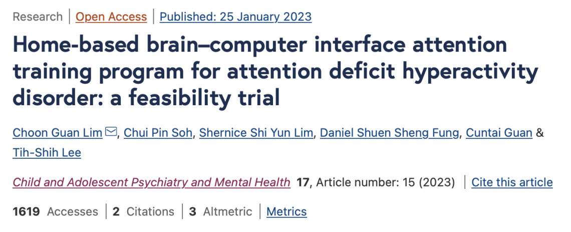 - Lim, C.G., Soh, C.P., Lim, S.S.Y. et al. Home-based brain–computer interface attention training program for attention deficit hyperactivity disorder: a feasibility trial. Child Adolesc Psychiatry Ment Health 17, 15 (2023). https://doi.org/10.1186/s13034-022-00539-x
