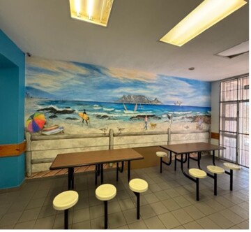 A shared vision between the child psychiatry team and the Tygerberg Hospital Childrens’ Trust was to reimagine the existing space in a way that would encourage healing through environmental changes alongside psychiatric interventions. Simple ideas like creating green spaces and a garden in limited outdoor courtyards, use of subtle colors/paintings over walls and furnishings, as well as utilizing ward space to provide a quiet calming space with softer furnishings where admitted patients could read, socialise and interact was crucial.